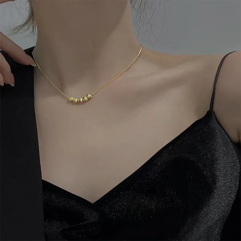 18k Gold Five Transfer Bead Necklace For Women Non Tarnish Simple and Small Design Pendant Necklace