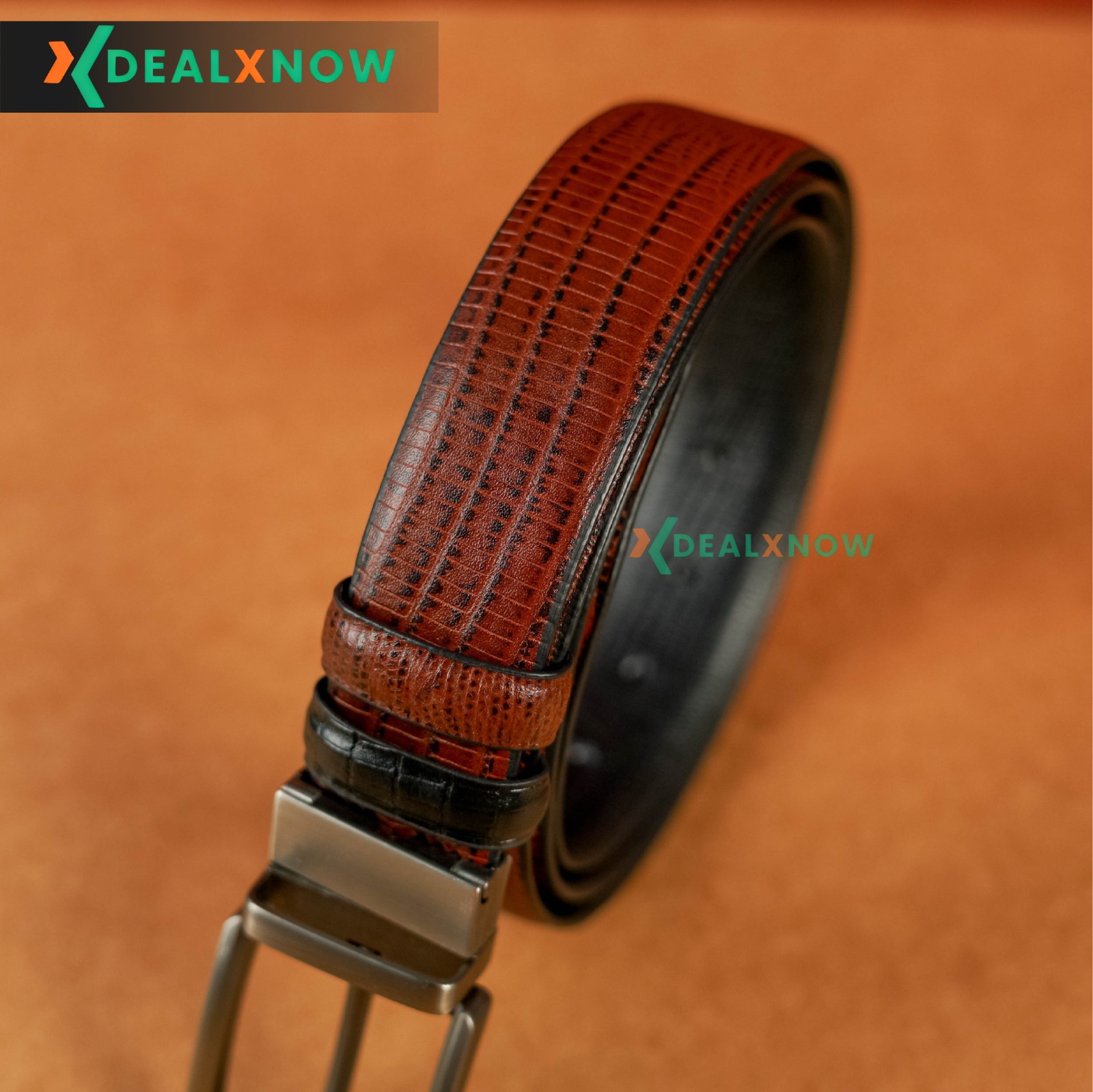 Prenium Lizard Pattern Belt – Dual Tone Moving Brockless